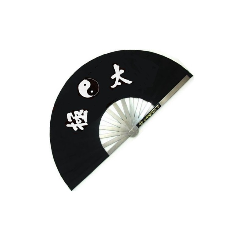 Eventail de combat en métal, imprimé Yin Yang & Calligraphies - NOIR